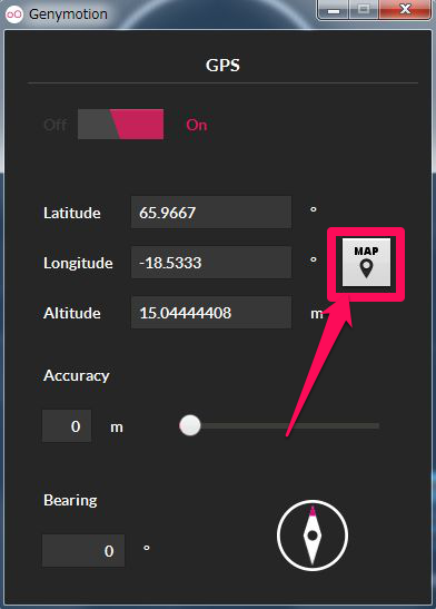 【モンスト】GenymotionのGPS機能を使ってみよう!仮想マシン上でのテスト環境搭載!! モンスト 2015年03月11日 Sponsored Genymotion仮想マシン上でのGPS機能の使い方を解説。 1.Genymotion画面右上の GPS ボタンを押すと、GPS 画面が起動します。 2.GPS設定のデフォルトではoffになっているので、クリックしてonにします。 3.GPS機能がonになると座標が出現します。・「MAP」ボタンを押して地図を表示させます。 4.現在位置がデフォルトではアイスランドになっています。※ 最初はズームアップされた状態になっています。・下の画面は縮小したときの画面です。 5.東京ディズニーランドに設定してみました。・MAPデータ上では東京ディズニーランドにいることになっています。 ※(注意)※キチンと対策されたアプリでは位置偽装していることが簡単にばれてしまいます。位置偽装はBAN対象のアプリも多いので使用する時は自己責任で使用してください。機能していますでしょうか?お疲れ様でした。【モンスト関連記事】・Xprivacyの設定「Ver.5.0.1対応」と自演招待の方法 http://wwworld.gg-blog.com/%E3%83%A2%E3%83%B3%E3%82%B9%E3%82%BF%E3%83%BC%E3%82%B9%E3%83%88%E3%83%A9%E3%82%A4%E3%82%AF/%E3%80%90%E3%82%A8%E3%83%9F%E3%83%A5%E3%83%AC%E3%83%BC%E3%82%BF%E3%80%91genymotion%E3%81%AEgps%E6%A9%9F%E8%83%BD%E3%82%92%E4%BD%BF【モンスト】GenymotionのGPS機能を使ってみよう!仮想マシン上でのテスト環境搭載!! PRSponsored