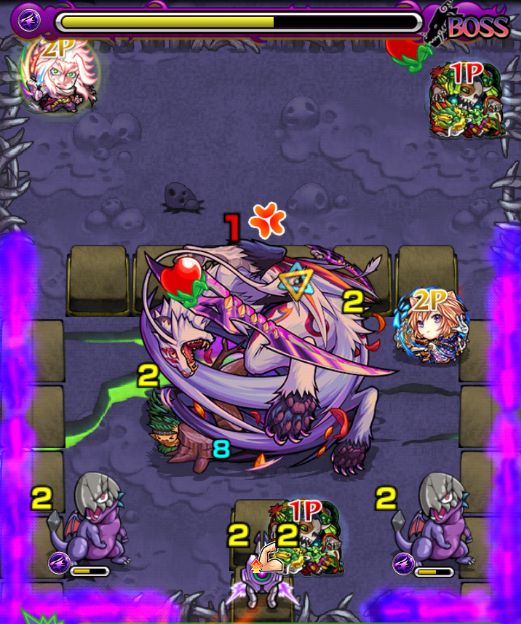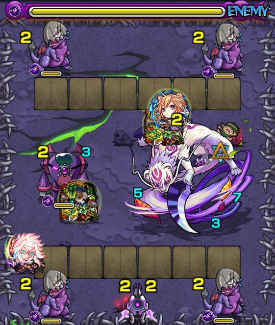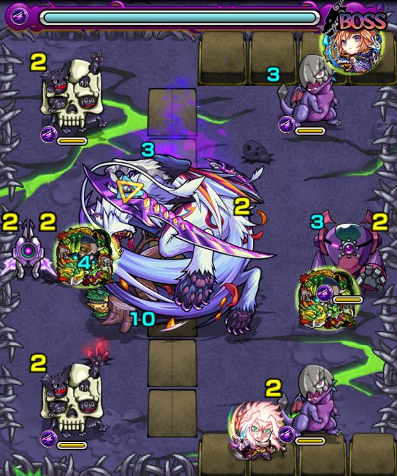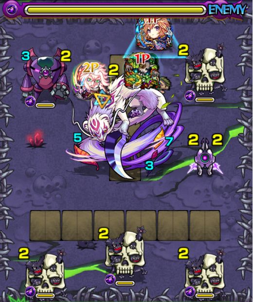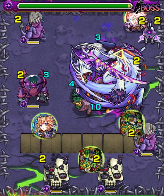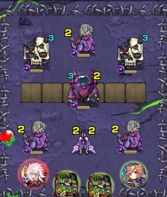 ※ ここでは、爆発範囲が広く高ダメージの爆発をしてくるドクロを優先して倒そう。初期配置が悪く、地雷雑魚に全員近い場合は地雷雑魚からでも可。