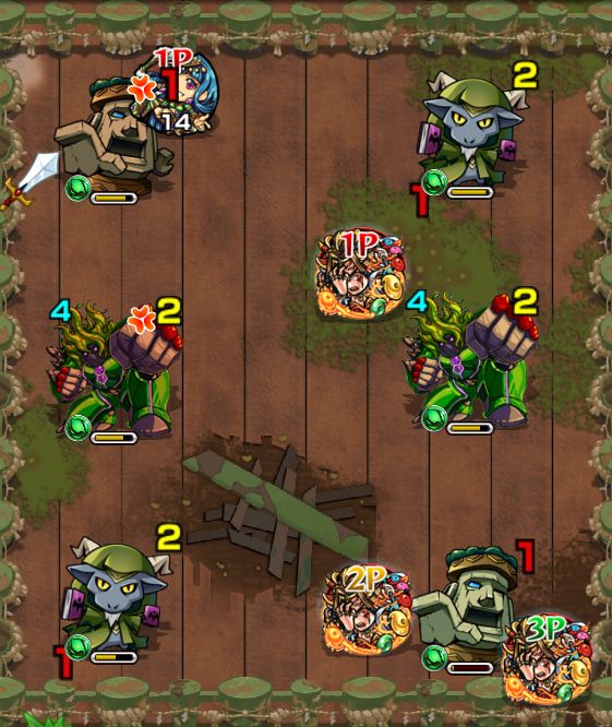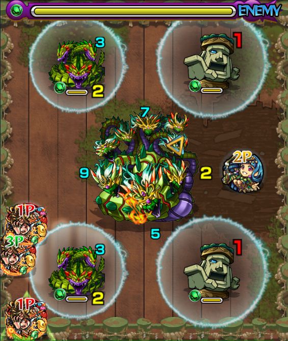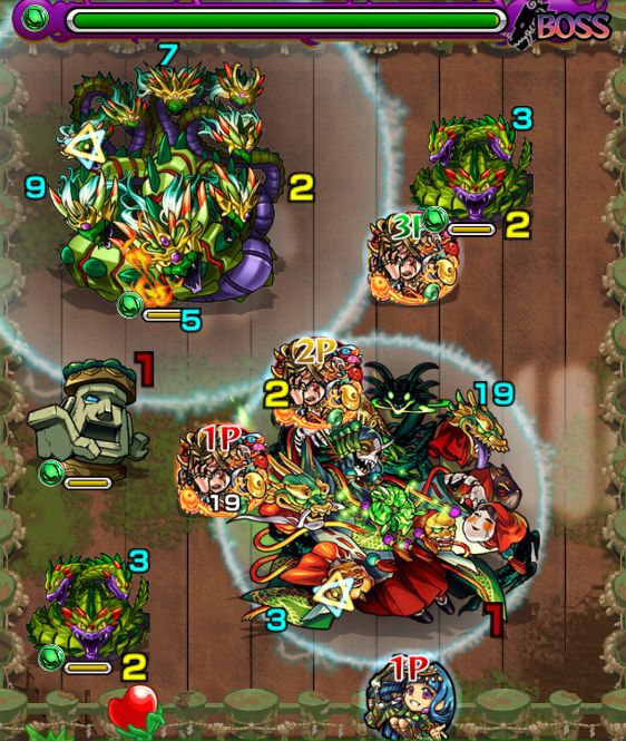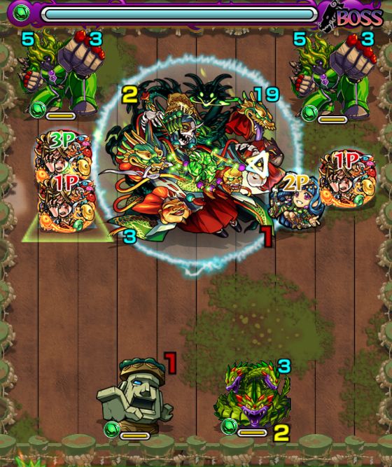 ・左上の大きい雑魚を真っ先に倒さないと大ダメージをくらう。雑魚を全て処理してからBOSSと戦おう。