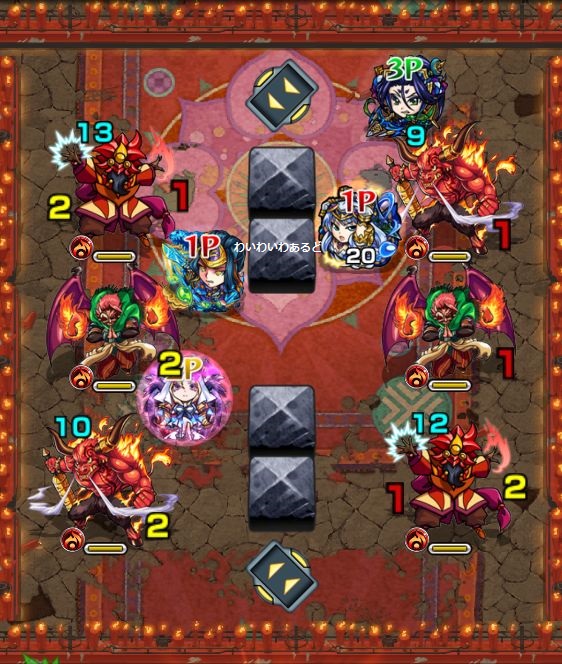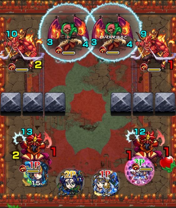 1.4ターン目までは外側キープで四隅にいる赤鬼を攻撃。