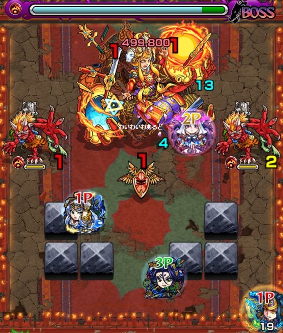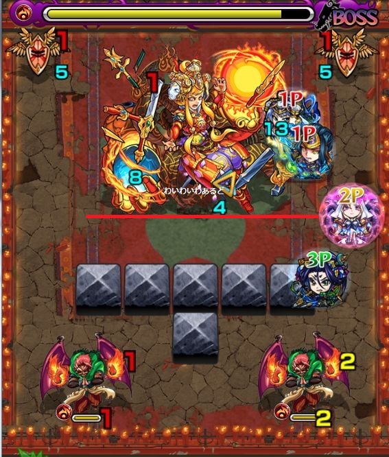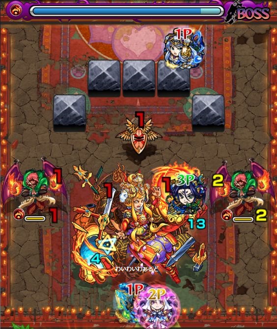 2.赤鬼の中心への拡散攻撃が終わったら、中央にいる中BOSSを速攻で倒そう。