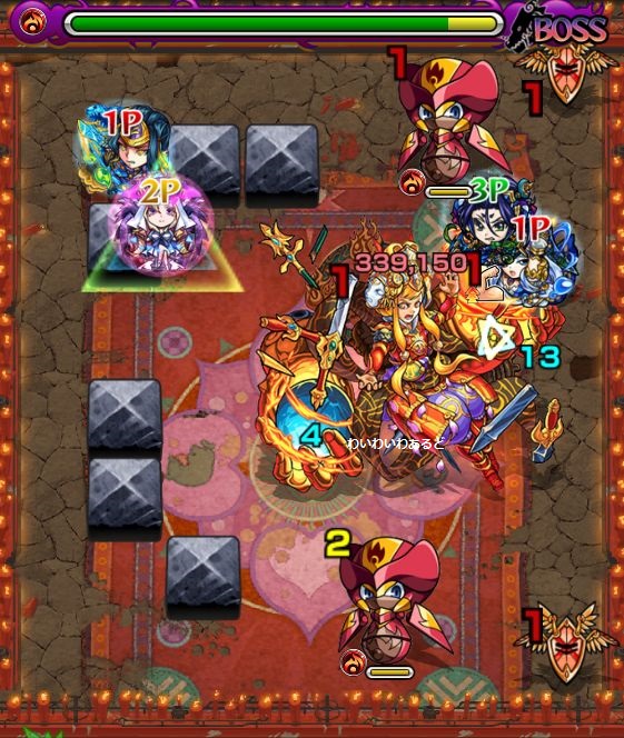 1.阿修羅が4ターン目に強力な白爆発を放つので、3ターン目までにブロックの外側まで逃げよう。