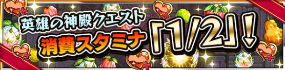 「英雄の神殿クエスト」の消費スタミナが「1/2」になります!