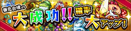 「強化合成」をした際に「大成功!!」になる確率が期間限定で大アップします。