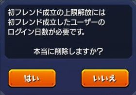 2.「初フレンド成立」したフレンドの合計のログイン日数が規定の日数を超えると上限がアップします。