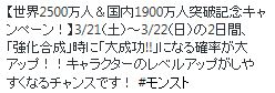 【モンスト】お忘れなく!明日から「強化合成」確率が大アップ!! モンスト 2015年03月20日 Sponsored 明日から3/21~3/22「強化合成」確率が大アップ!!この機会にモンスターのレベルとタス値をMAXにしよう!! 招待で貯めたタスの巣窟を使うチャンスだ!また、招待のマルチ限定巣窟チケット使ってガンガンステータスアップしよう! 【関連記事】PC限定 Ver4.1対応 最新高速自演招待 オーブ550個 GET!! http://wwworld.gg-blog.com/%E3%83%A2%E3%83%B3%E3%82%B9%E3%82%BF%E3%83%BC%E3%82%B9%E3%83%88%E3%83%A9%E3%82%A4%E3%82%AF/%E3%80%90%E3%83%A2%E3%83%B3%E3%82%B9%E3%83%88%E3%80%91%E3%81%8A%E5%BF%98%E3%82%8C%E3%81%AA%E3%81%8F%EF%BC%81%E6%98%8E%E6%97%A5%E3%81%8B%E3%82%89%E3%80%8C%E5%BC%B7%E5%8C%96%E5%90%88%E6%88%90%E3%80%8D%E7%A2%BA%E7%8E%87%E3%81%8C%E5%A4%A7%E3%82%A2%E3%83%83%E3%83%97%EF%BC%81%EF%BC%81【モンスト】お忘れなく!明日から「強化合成」確率が大アップ!! PRSponsored