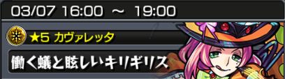 【モンスト】3/7(土)の降臨クエスト 滝夜叉姫、クシナダが降臨!! モンスト 2015年03月06日 Sponsored 降臨クエストは新モンスターカヴァレッタが再々降臨!! ★ 滝夜叉姫 ◆滝夜叉姫の降臨まとめはこちら★ クルップIVD ◆クルップⅣD(ティーガーI)の降臨まとめはこちら★ オリジナル ◆オリジナル(ゼロ)の降臨まとめはこちら★ クシナダ ◆クシナダの超絶降臨のまとめはこちら★ ヴィシャス ◆ヴィシャスの降臨まとめはこちら★ カヴァレッタ ◆カヴァレッタの降臨クエストまとめはこちら★ ツクヨミ ◆ツクヨミの超絶降臨まとめはこちら★ クィーンバタフライ ◆クィーンバタフライの降臨まとめはこちら http://wwworld.gg-blog.com/%E3%83%A2%E3%83%B3%E3%82%B9%E3%82%BF%E3%83%BC%E3%82%B9%E3%83%88%E3%83%A9%E3%82%A4%E3%82%AF/%E3%80%90%E3%83%A2%E3%83%B3%E3%82%B9%E3%83%88%E3%80%913-7%EF%BC%88%E5%9C%9F%EF%BC%89%E3%81%AE%E9%99%8D%E8%87%A8%E3%82%AF%E3%82%A8%E3%82%B9%E3%83%88%E3%80%80%E9%81%A9%E6%AD%A3%E3%82%AD%E3%83%A3%E3%83%A9%EF%BC%86【モンスト】3/7(土)の降臨クエスト 滝夜叉姫、クシナダが降臨!! PRSponsored