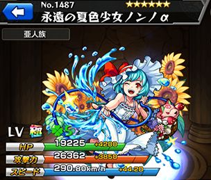 【モンスト】夏色少女ノンノα(のんのあるふぁ)の適正と評価(進化・神化)