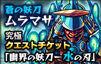 【モンスト】「特別降臨クエスト」「究極」蒼(水)の妖刀 村正(ムラマサ)の適正モンスター&パーティ・素材情報 まとめ モンスト 2015年03月28日 ★ 蒼(水)の妖刀 ムラマサ 攻略情報 まとめ つづきを読む
